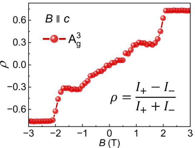 拉曼振动模式的圆偏振度(ρ)随磁场的变化